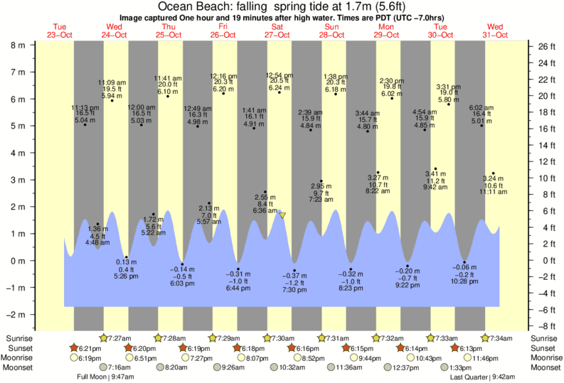 Forecast wind and swell just offshore from Ocean Beach around the time the photo was taken