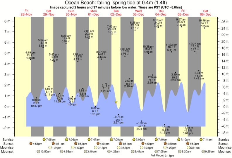 Forecast wind and swell just offshore from Ocean Beach around the time the photo was taken