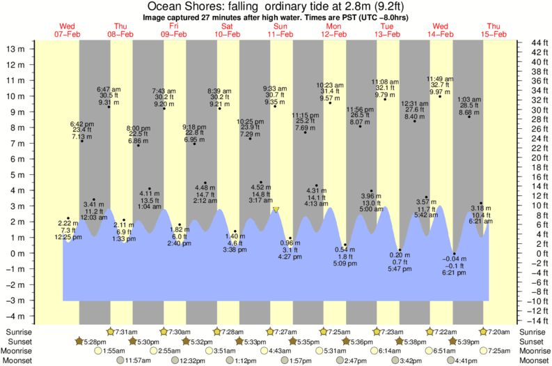 Forecast wind and swell just offshore from Ocean Shores around the time the photo was taken