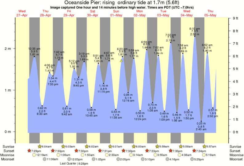 Forecast wind and swell just offshore from Oceanside Pier around the time the photo was taken
