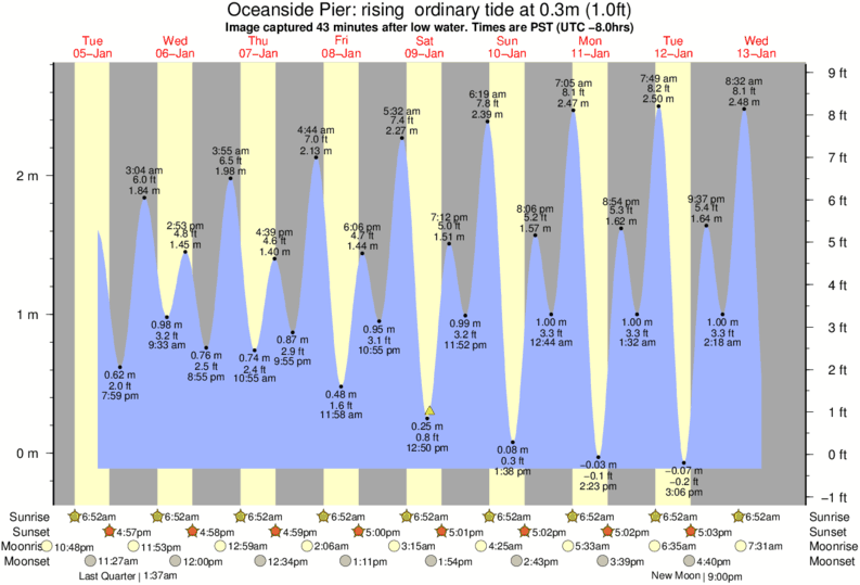 Image captured 43 minutes after low water (rising ordinary tide). Tide height was 0.3m (1.0 ft). Range 2.66m (8.7 ft). Toggle tide graph