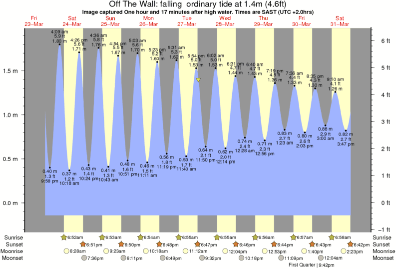 Image captured One hour and 17 minutes after high water (falling ordinary tide). Tide height was 1.4m (4.6 ft). Range 1.93m (6.3 ft). Toggle tide graph