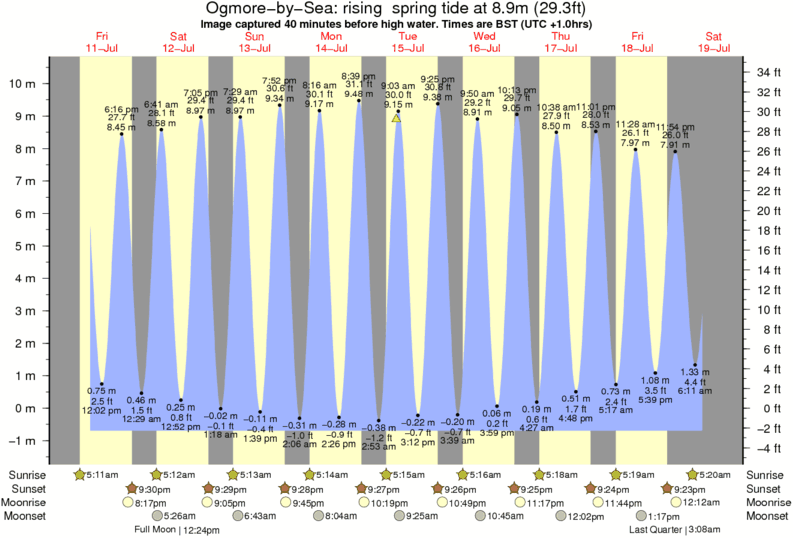 Image captured 40 minutes before high water (rising spring tide). Tide height was 8.9m (29.3 ft). Range 10.48m (34.4 ft). Toggle tide graph