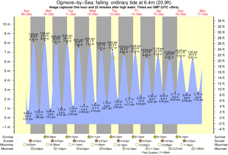 Image captured One hour and 33 minutes after high water (falling ordinary tide). Tide height was 6.4m (20.9 ft). Range 10.45m (34.3 ft). Toggle tide graph