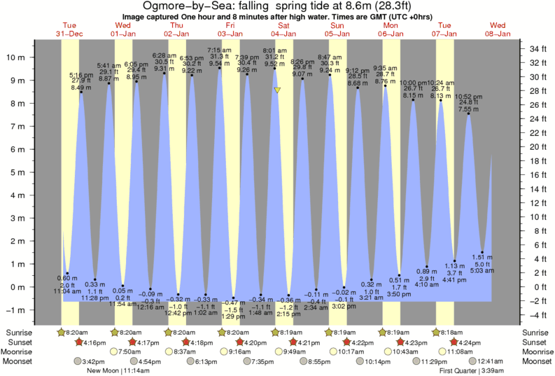 Image captured One hour and 8 minutes after high water (falling spring tide). Tide height was 8.6m (28.3 ft). Range 10.37m (34.0 ft). Toggle tide graph