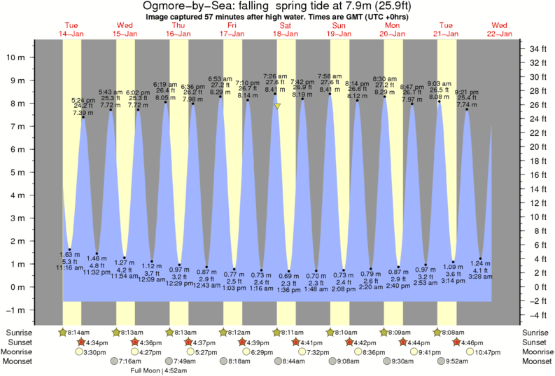 Forecast wind and swell just offshore from Ogmore-by-Sea around the time the photo was taken
