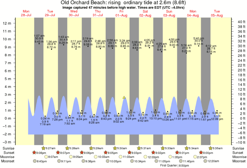 Forecast wind and swell just offshore from Old Orchard Beach around the time the photo was taken