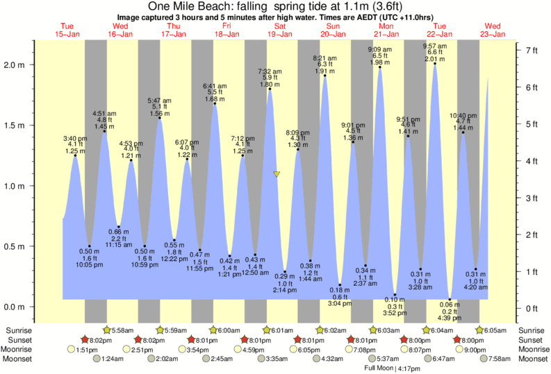 Forecast wind and swell just offshore from One Mile Beach around the time the photo was taken
