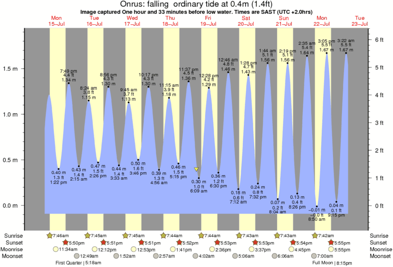 Image captured One hour and 33 minutes before low water (falling ordinary tide). Tide height was 0.4m (1.4 ft). Range 1.85m (6.1 ft). Toggle tide graph
