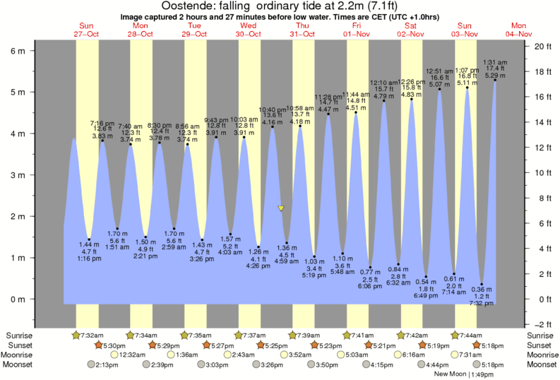 Image captured 2 hours and 27 minutes before low water (falling ordinary tide). Tide height was 2.2m (7.1 ft). Range 5.80m (19.0 ft). Toggle tide graph