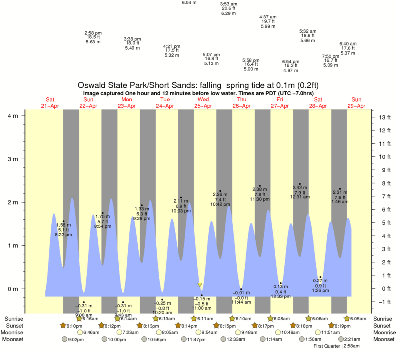 Image captured One hour and 12 minutes before low water (falling spring tide). Tide height was 0.1m (0.2 ft). Range 3.93m (12.9 ft). Toggle tide graph