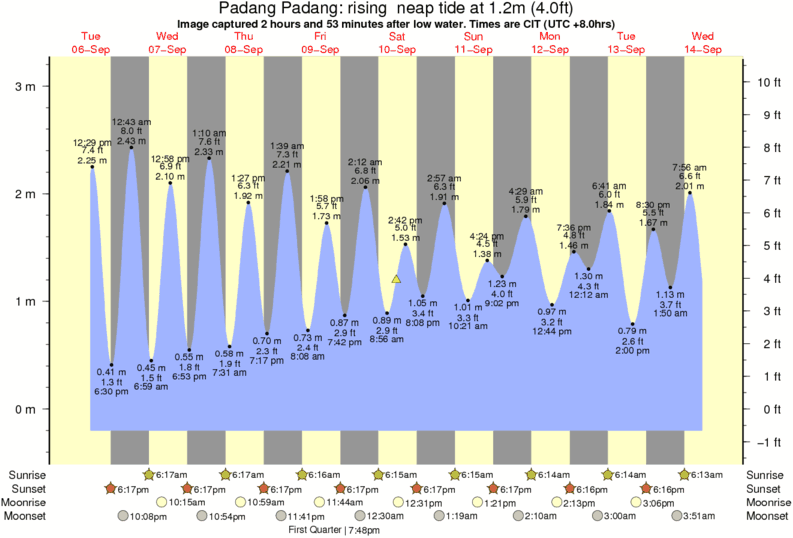 Image captured 2 hours and 53 minutes after low water (rising neap tide). Tide height was 1.2m (4.0 ft). Range 3.16m (10.4 ft). Toggle tide graph