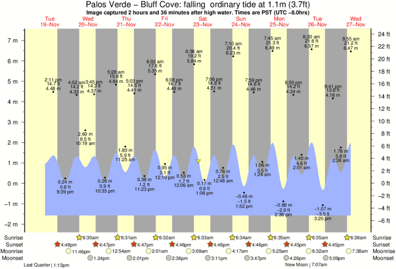 Image captured 2 hours and 36 minutes after high water (falling ordinary tide). Tide height was 1.1m (3.7 ft). Range 8.32m (27.3 ft). Toggle tide graph