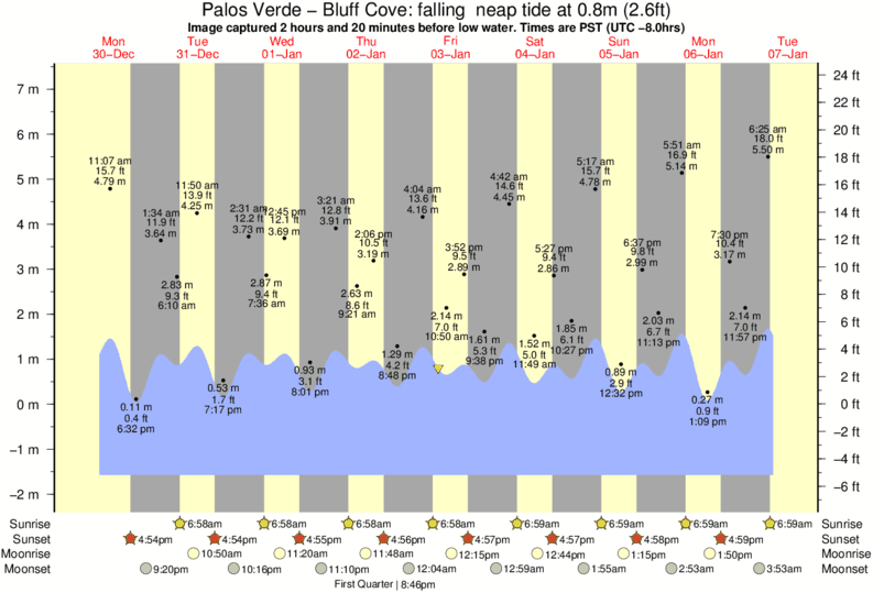 Image captured 2 hours and 20 minutes before low water (falling neap tide). Tide height was 0.8m (2.6 ft). Range 8.32m (27.3 ft). Toggle tide graph