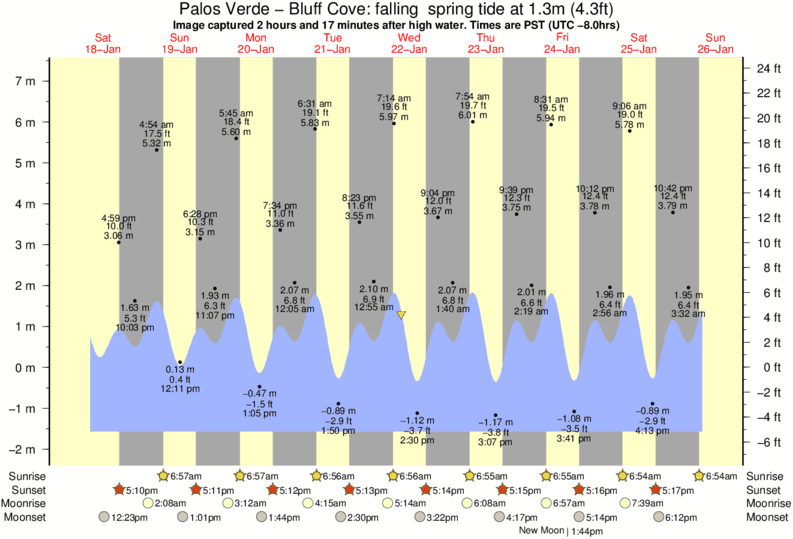 Image captured 2 hours and 17 minutes after high water (falling spring tide). Tide height was 1.3m (4.3 ft). Range 8.32m (27.3 ft). Toggle tide graph