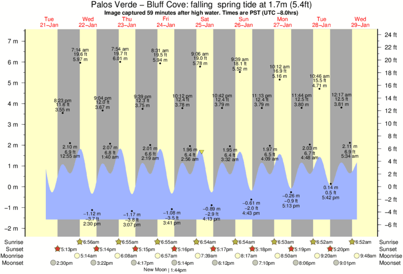 Image captured 59 minutes after high water (falling spring tide). Tide height was 1.7m (5.4 ft). Range 8.32m (27.3 ft). Toggle tide graph