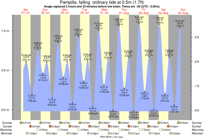 Image captured 2 hours and 33 minutes before low water (falling ordinary tide). Tide height was 0.5m (1.7 ft). Range 1.11m (3.6 ft). Toggle tide graph