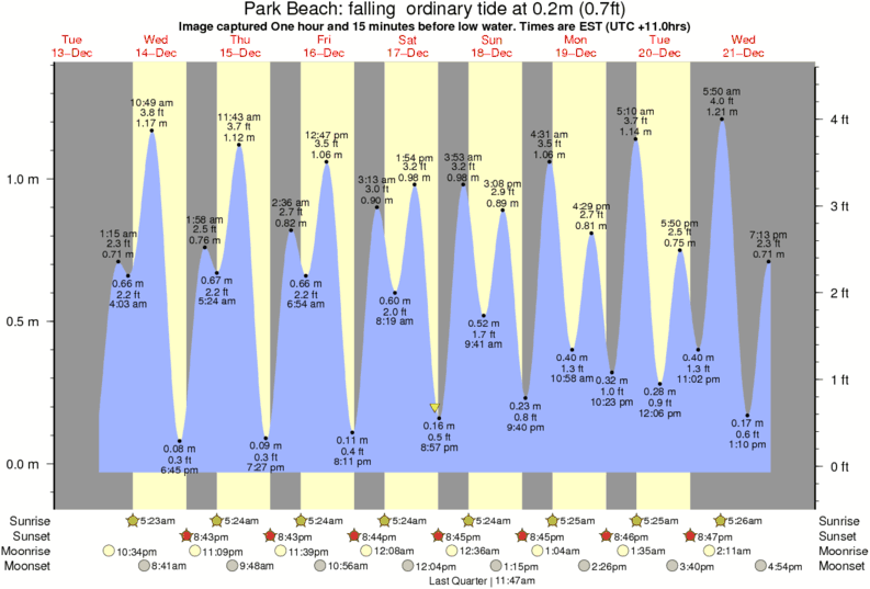Forecast wind and swell just offshore from Park Beach around the time the photo was taken
