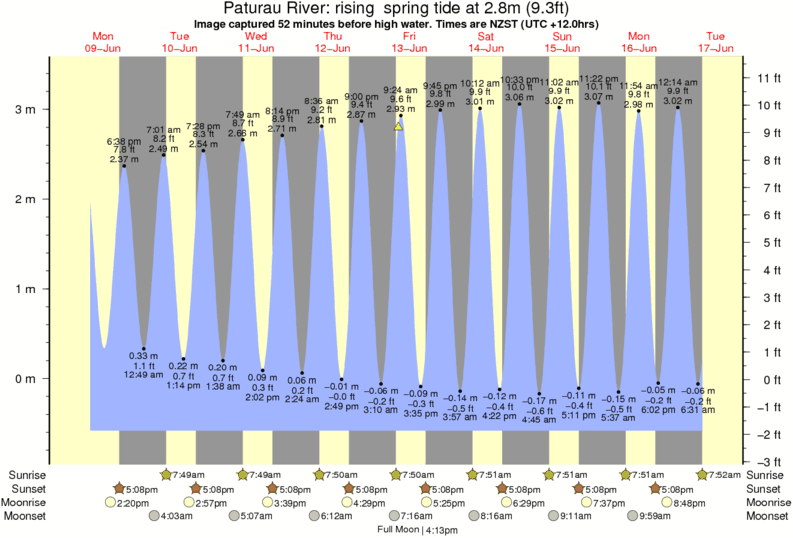 Forecast wind and swell just offshore from Paturau River around the time the photo was taken