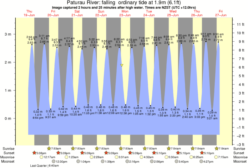 Image captured 2 hours and 25 minutes after high water (falling ordinary tide). Tide height was 1.9m (6.1 ft). Range 3.79m (12.4 ft). Toggle tide graph