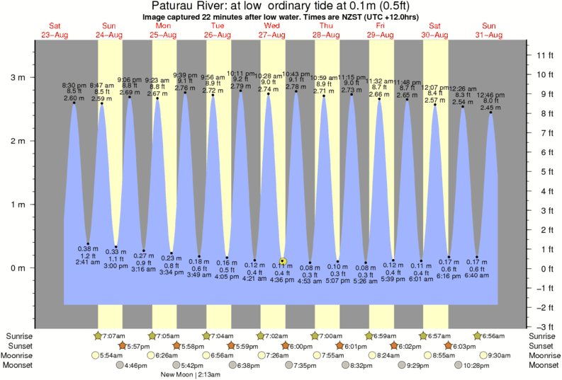 Forecast wind and swell just offshore from Paturau River around the time the photo was taken