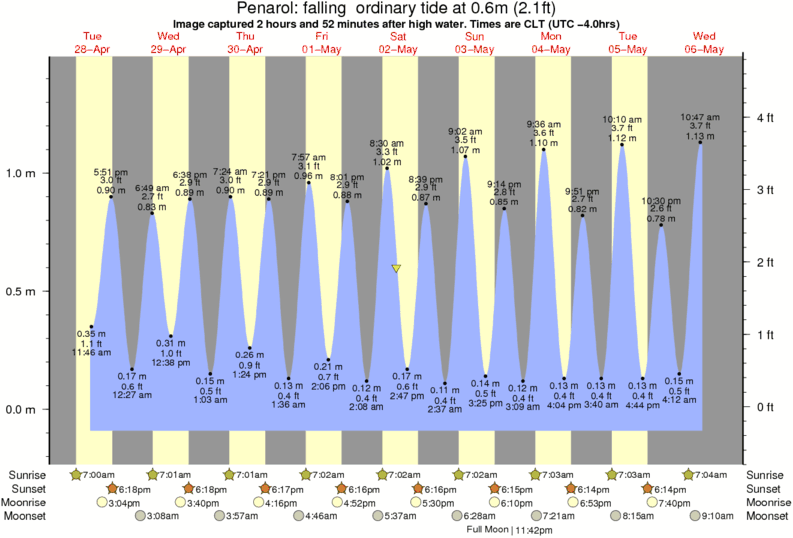 Image captured 2 hours and 52 minutes after high water (falling ordinary tide). Tide height was 0.6m (2.1 ft). Range 1.44m (4.7 ft). Toggle tide graph