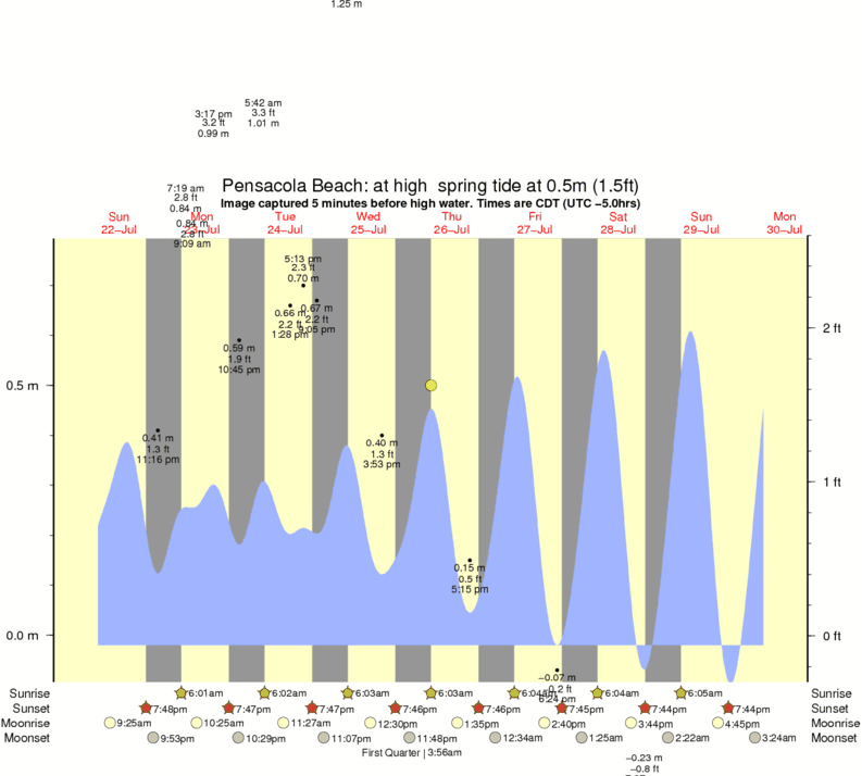 Forecast wind and swell just offshore from Pensacola Beach around the time the photo was taken