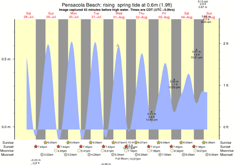 Forecast wind and swell just offshore from Pensacola Beach around the time the photo was taken