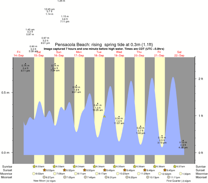 Forecast wind and swell just offshore from Pensacola Beach around the time the photo was taken