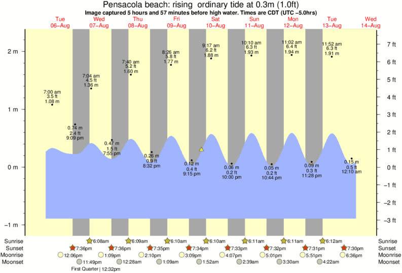 Forecast wind and swell just offshore from Pensacola beach around the time the photo was taken