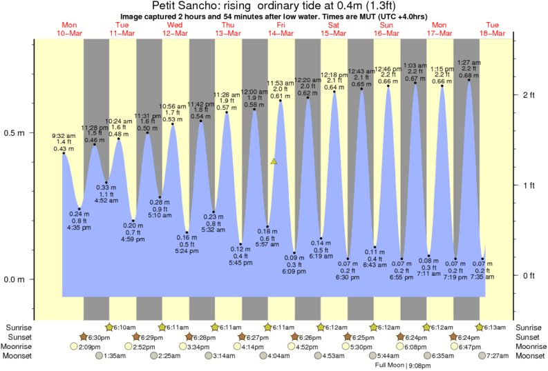 Image captured 2 hours and 54 minutes after low water (rising ordinary tide). Tide height was 0.4m (1.3 ft). Range 0.80m (2.6 ft). Toggle tide graph