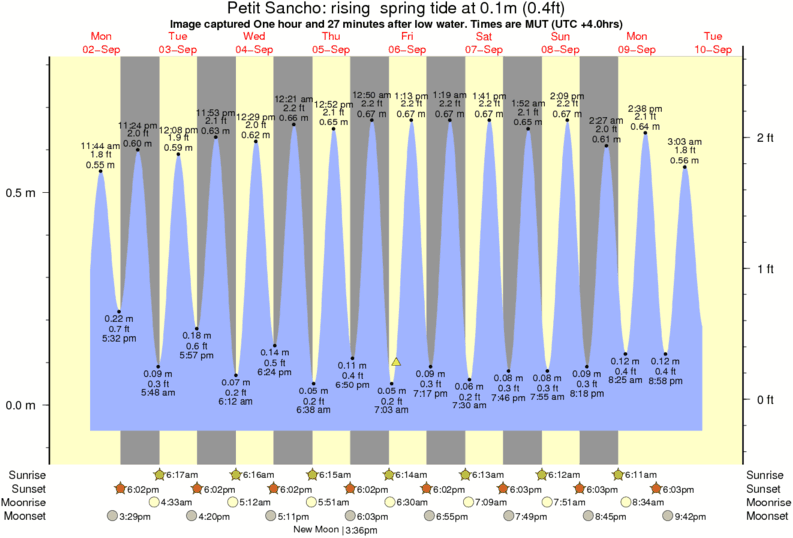 Image captured One hour and 27 minutes after low water (rising spring tide). Tide height was 0.1m (0.4 ft). Range 0.80m (2.6 ft). Toggle tide graph