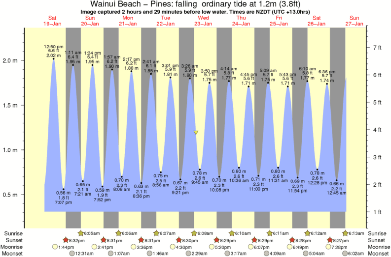Forecast wind and swell just offshore from Wainui Beach - Pines around the time the photo was taken