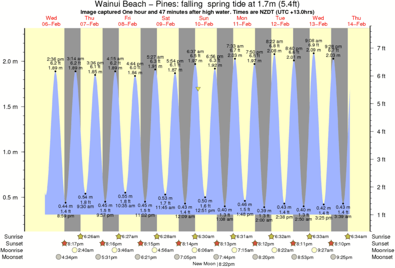 Forecast wind and swell just offshore from Wainui Beach - Pines around the time the photo was taken