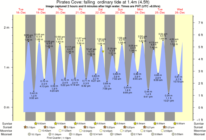 Image captured 2 hours and 8 minutes after high water (falling ordinary tide). Tide height was 1.4m (4.5 ft). Range 2.22m (7.3 ft). Toggle tide graph