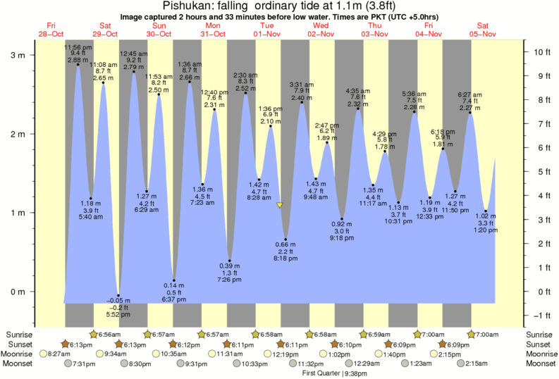 Image captured 2 hours and 33 minutes before low water (falling ordinary tide). Tide height was 1.1m (3.8 ft). Range 3.04m (10.0 ft). Toggle tide graph