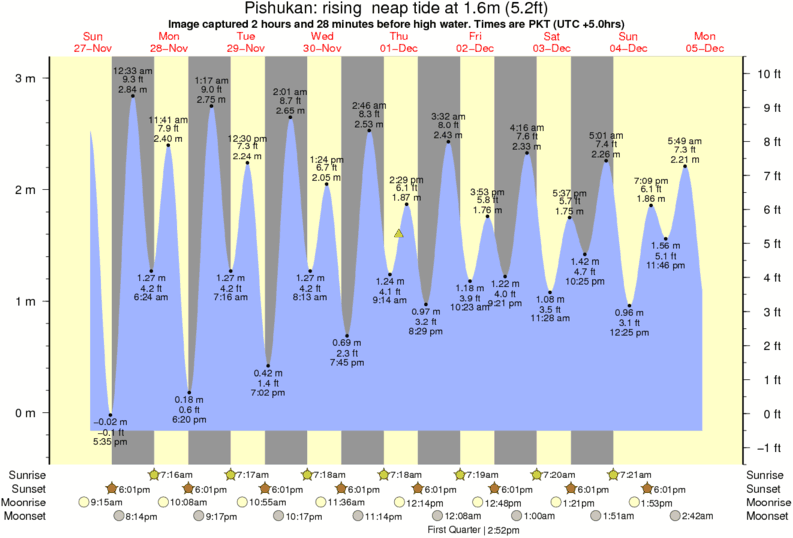 Forecast wind and swell just offshore from Pishukan around the time the photo was taken