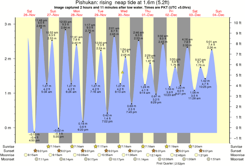 Image captured 2 hours and 11 minutes after low water (rising neap tide). Tide height was 1.6m (5.2 ft). Range 3.04m (10.0 ft). Toggle tide graph