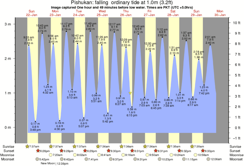 Image captured One hour and 49 minutes before low water (falling ordinary tide). Tide height was 1.0m (3.2 ft). Range 3.05m (10.0 ft). Toggle tide graph