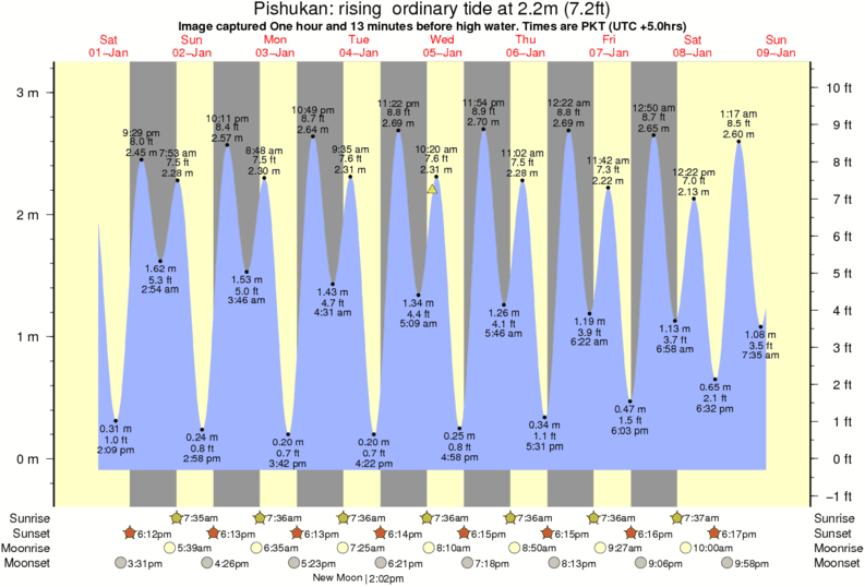 Image captured One hour and 13 minutes before high water (rising ordinary tide). Tide height was 2.2m (7.2 ft). Range 3.04m (10.0 ft). Toggle tide graph