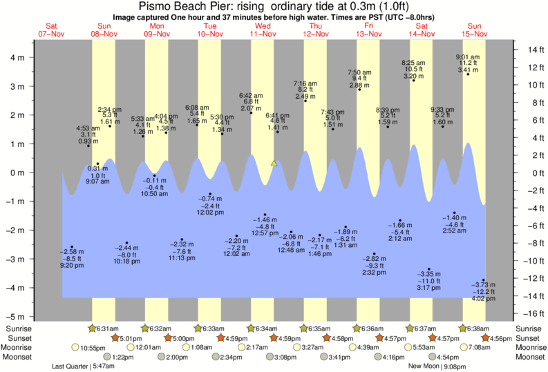 Forecast wind and swell just offshore from Pismo Beach Pier around the time the photo was taken