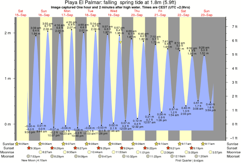 Forecast wind and swell just offshore from Playa El Palmar around the time the photo was taken