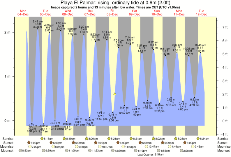 Image captured 2 hours and 13 minutes after low water (rising ordinary tide). Tide height was 0.6m (2.0 ft). Range 2.25m (7.4 ft). Toggle tide graph