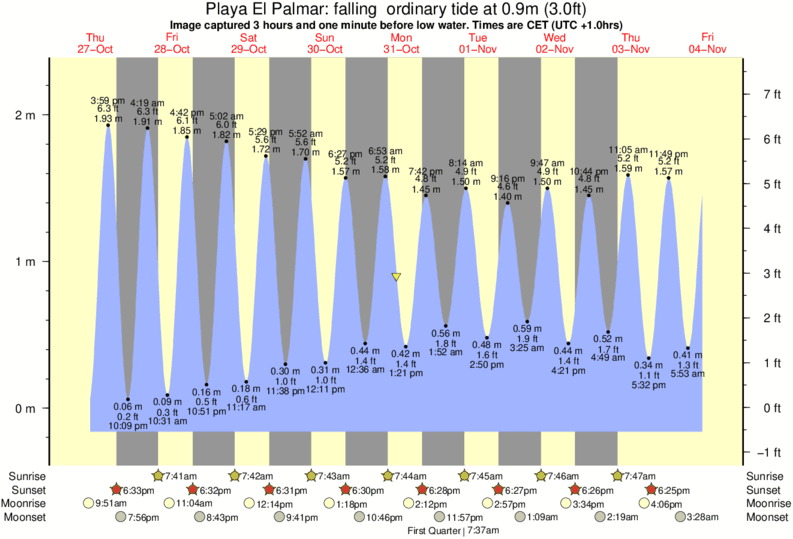 Forecast wind and swell just offshore from Playa El Palmar around the time the photo was taken