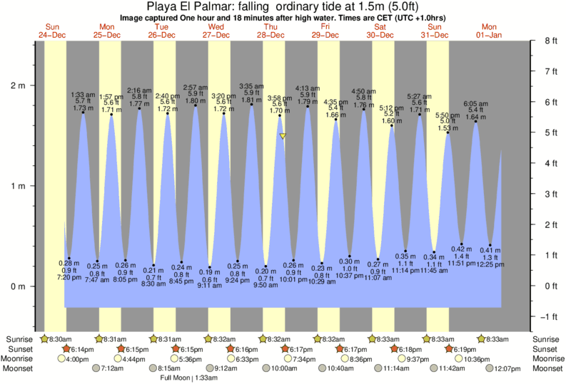 Forecast wind and swell just offshore from Playa El Palmar around the time the photo was taken