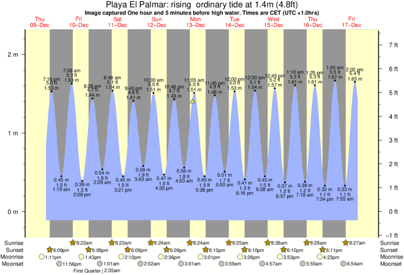 Forecast wind and swell just offshore from Playa El Palmar around the time the photo was taken
