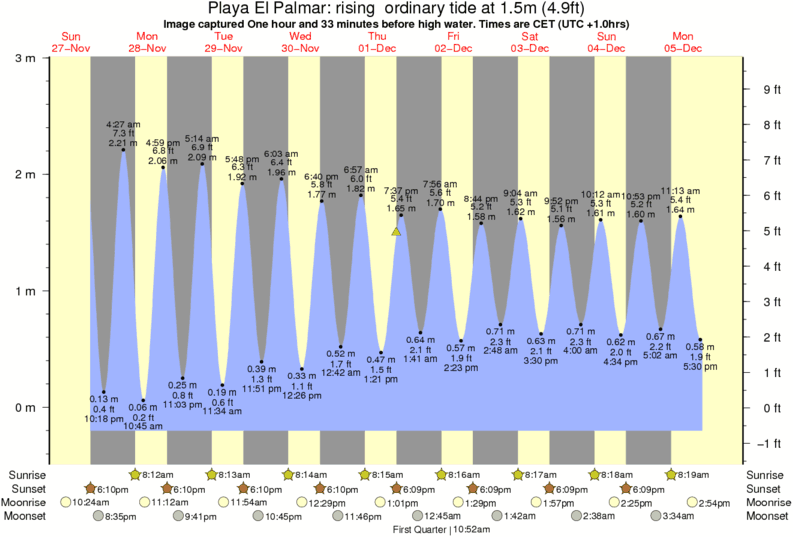 Forecast wind and swell just offshore from Playa El Palmar around the time the photo was taken