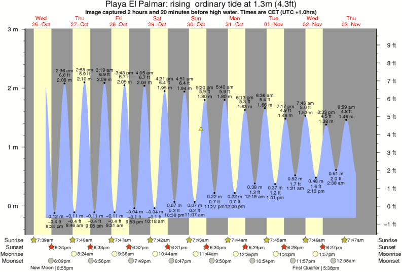 Image captured 2 hours and 20 minutes before high water (rising ordinary tide). Tide height was 1.3m (4.3 ft). Range 2.92m (9.6 ft). Toggle tide graph