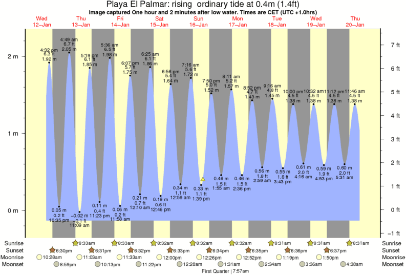 Image captured One hour and 2 minutes after low water (rising ordinary tide). Tide height was 0.4m (1.4 ft). Range 2.26m (7.4 ft). Toggle tide graph