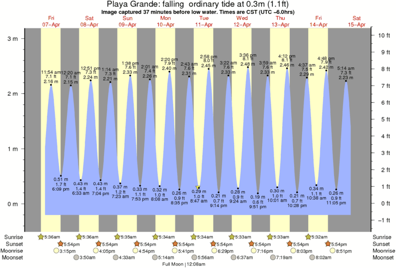 Forecast wind and swell just offshore from Playa Grande around the time the photo was taken